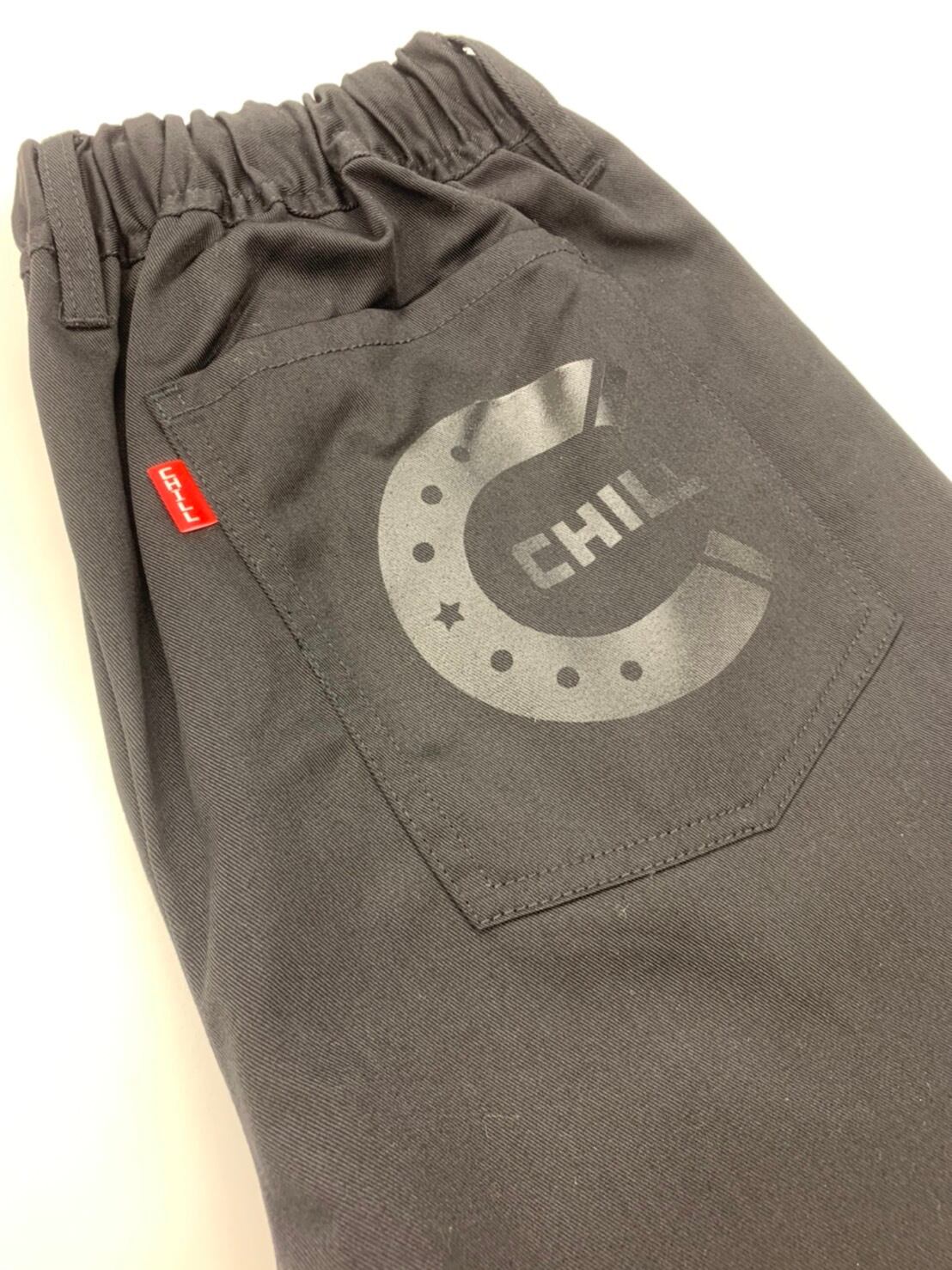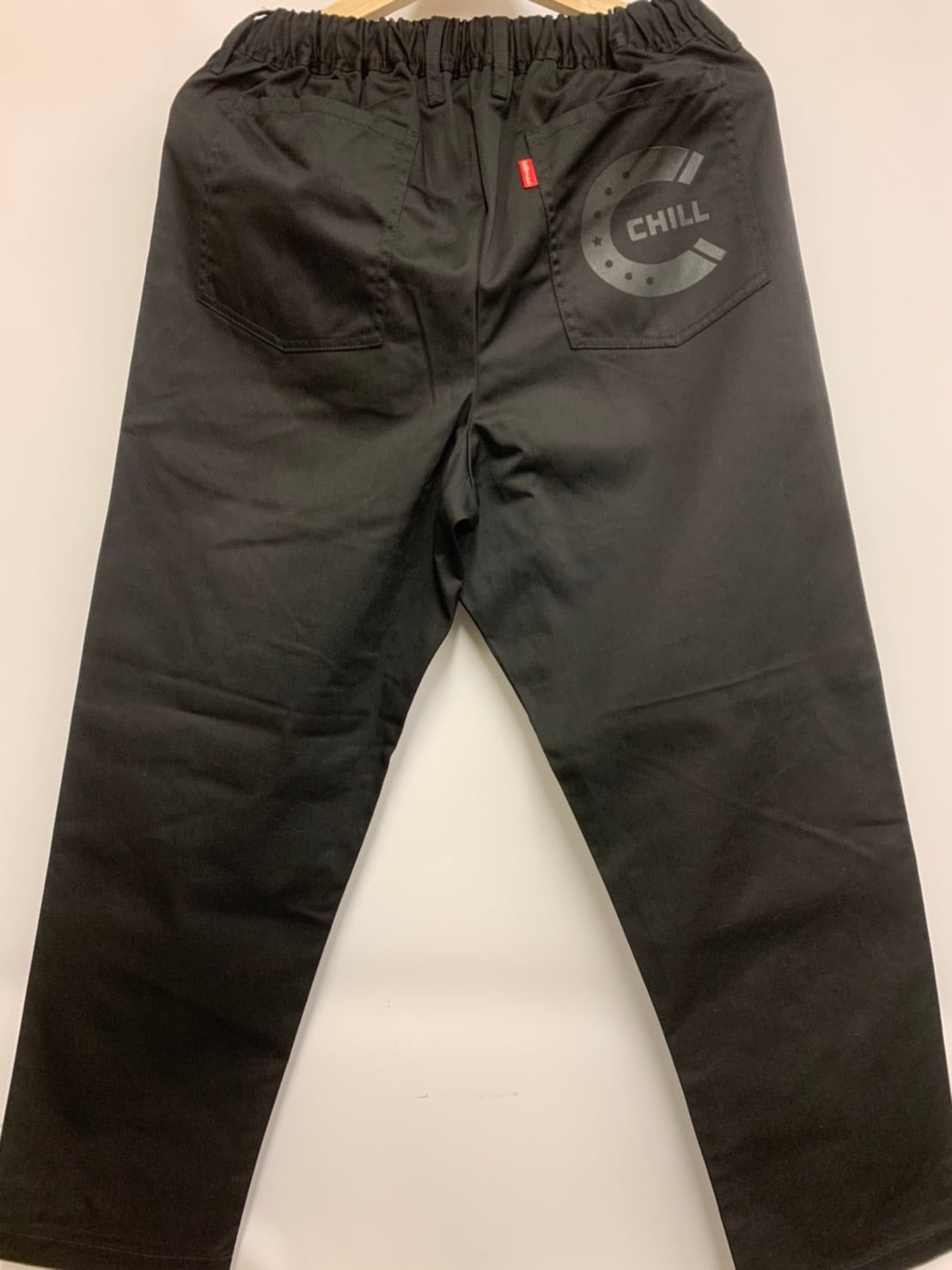 後ろポケットにはパンツと同色のCHILLのアイコン馬蹄タグを入れる事によりスタイルを選ばず、シンプルながらも個性的なCHILLらしい仕上がりとなっております。