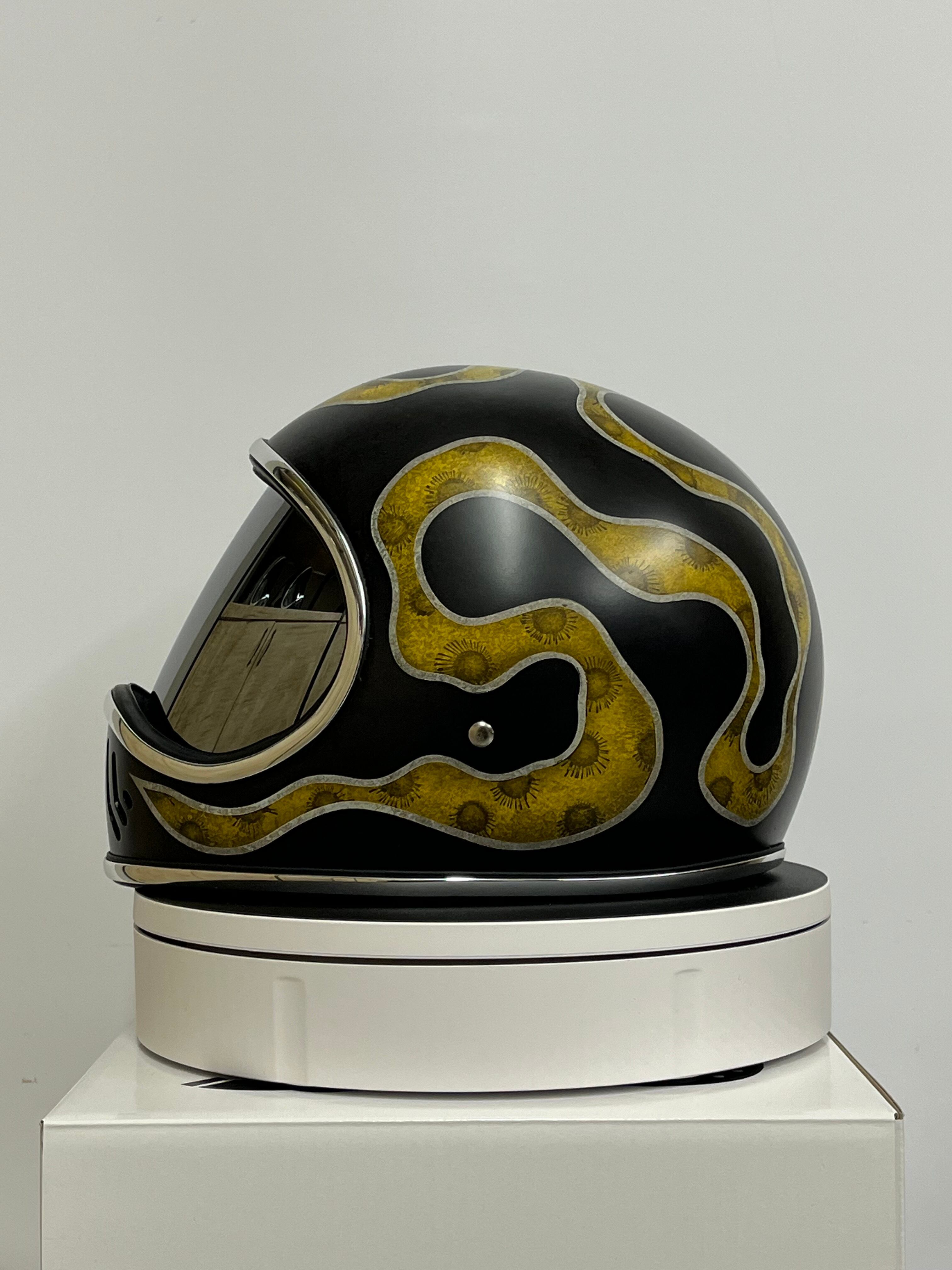 ペインターの協力により、ヘルメットと合わせての金額は一般的なヘルメットプラスカスタムペイント料金より3万円以上お安く提供させて頂いております。金額だけでもかなり破格ですがどこにもない一点物プラスセンスある仕上がりとなっておりますので他とは絶対に被りません。
