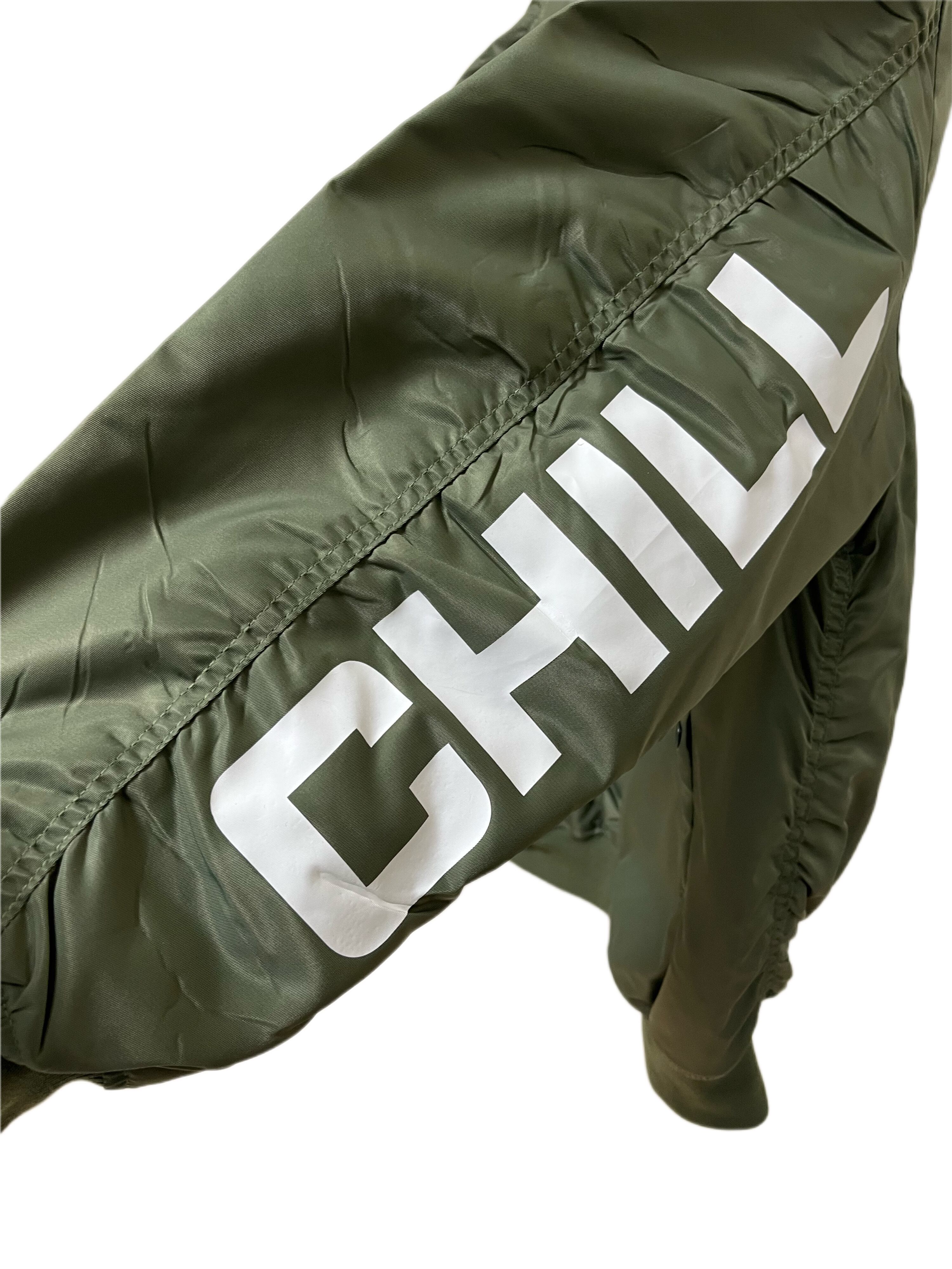 デザインは左袖に大きなCHILLをプリント、裾のセンターに折りタグを付け、CHILLらしくシンプルながら個性的な作りとなっております。