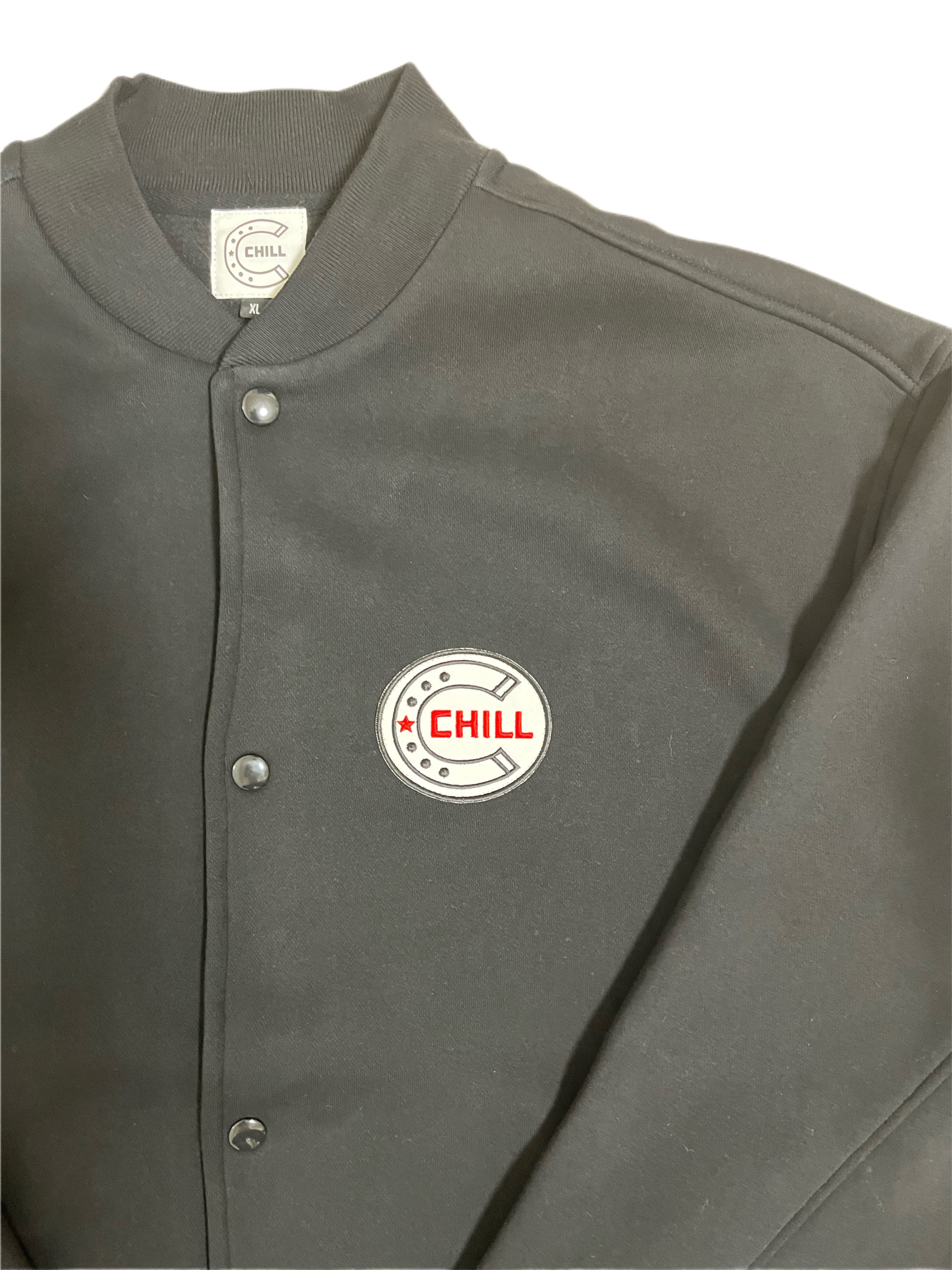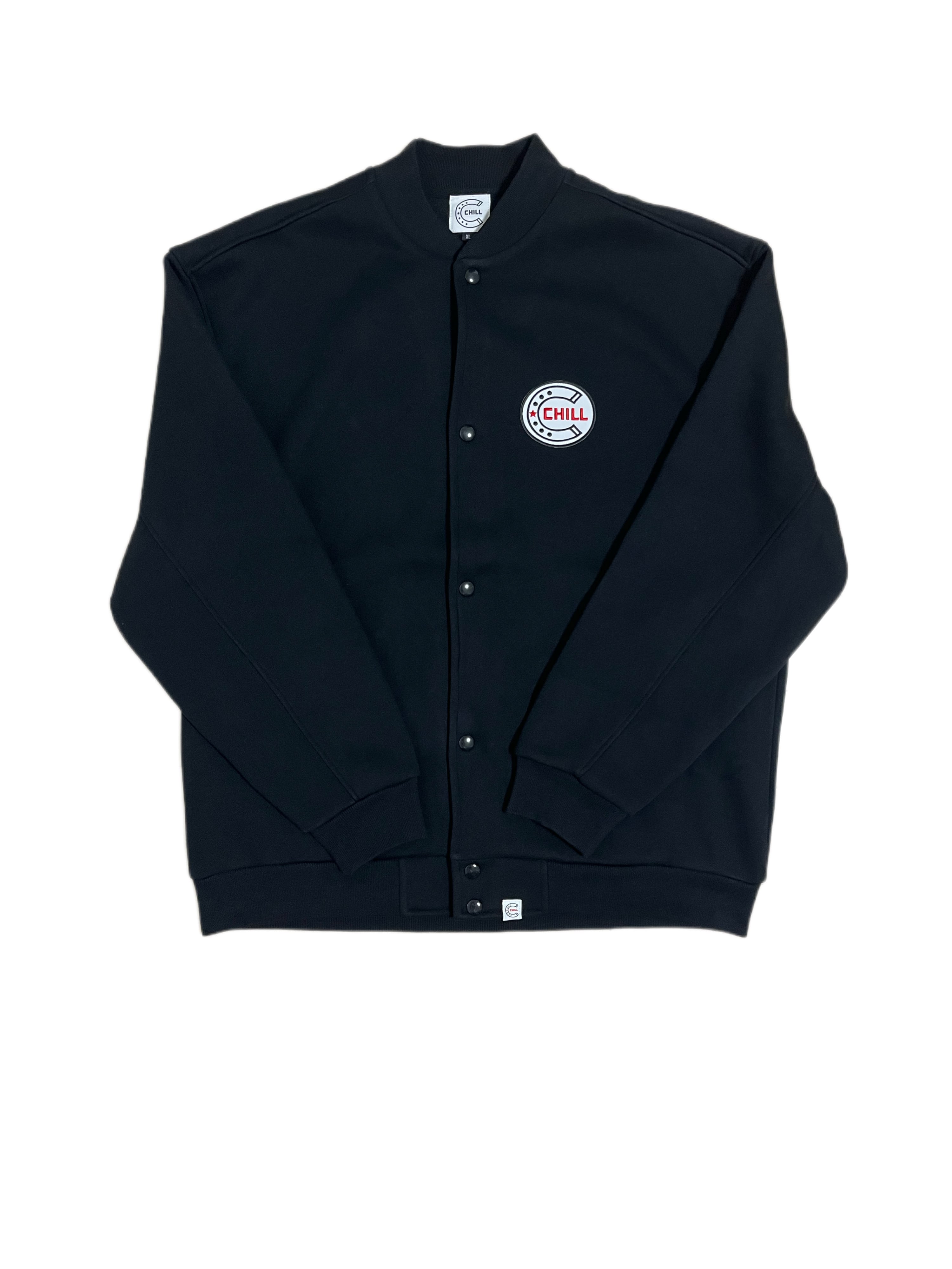 胸にデカワッペン入れたCHILLらしいシンプルながら存在感があるスウェットスタジャンが出来上がりました。