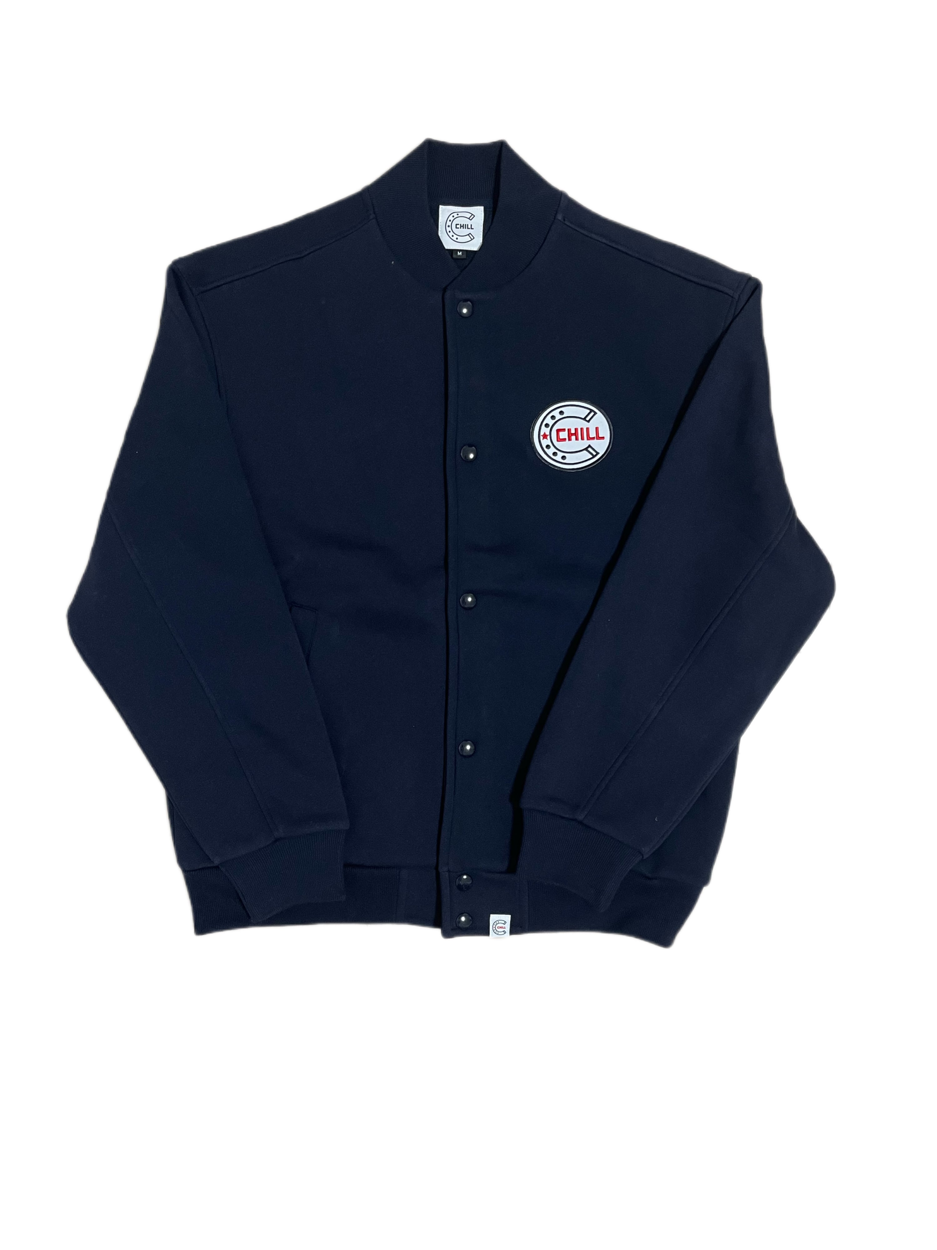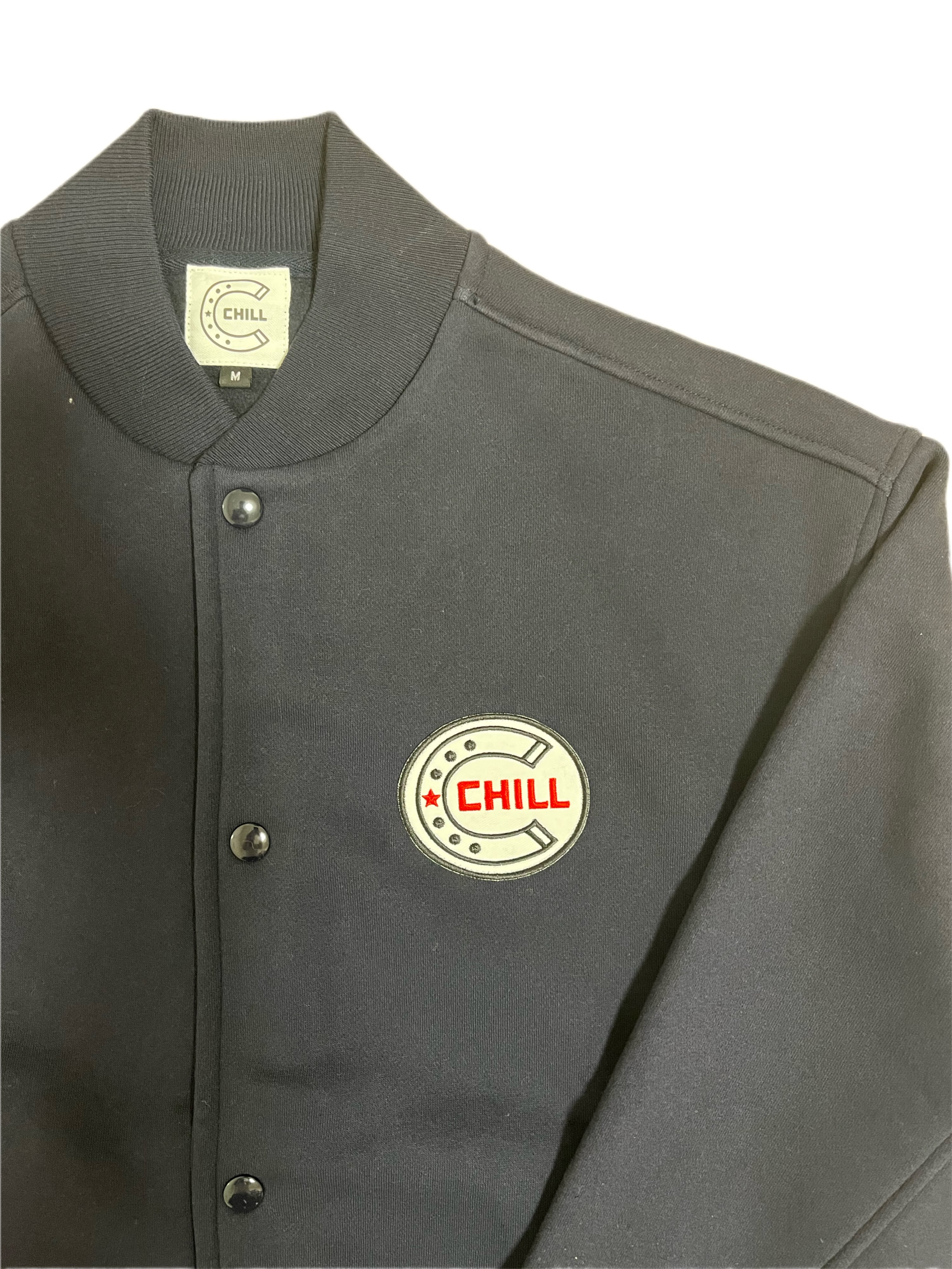 胸にデカワッペン入れたCHILLらしいシンプルながら存在感があるスウェットスタジャンが出来上がりました。
