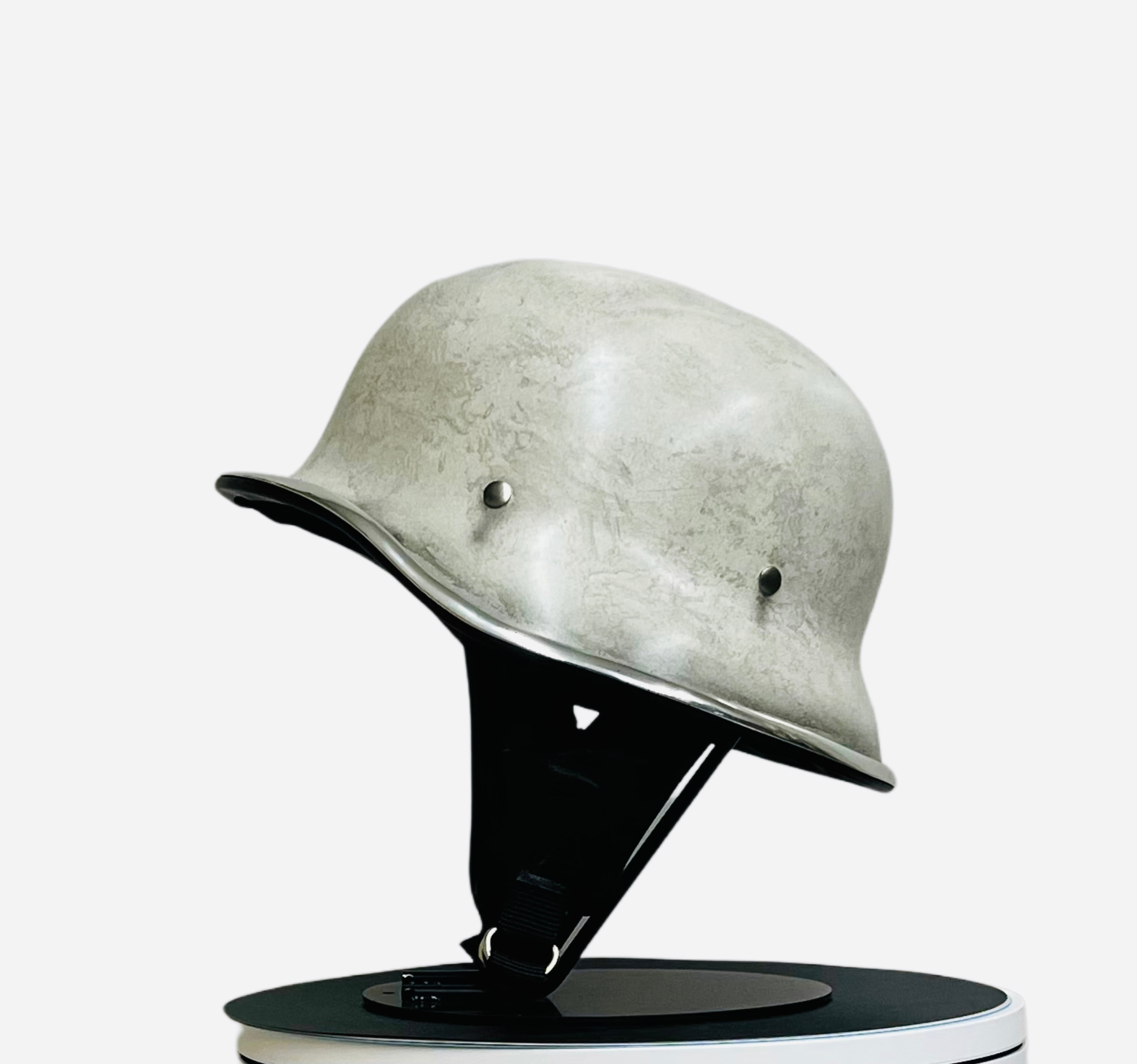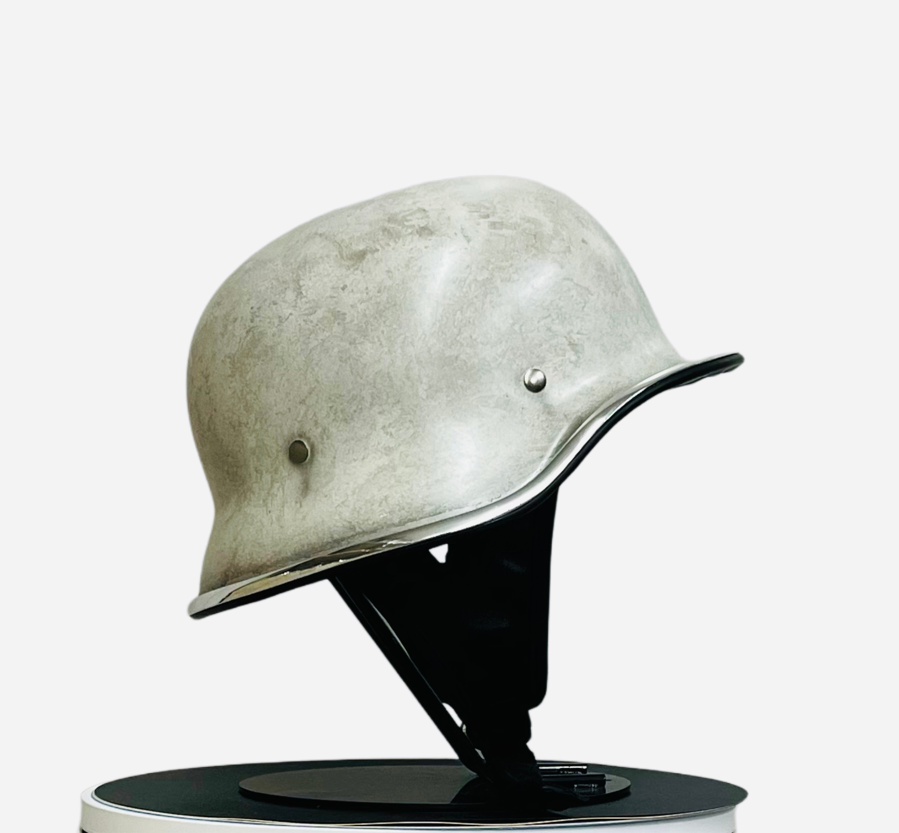 ヴィンテージのナチヘルを元に帽体をより小さくシェイプし、CHILLなりのアレンジを加えたフリッツヘルメットに何年も使用したかのようなエイジングを表現したカスタムペイントモデルです。