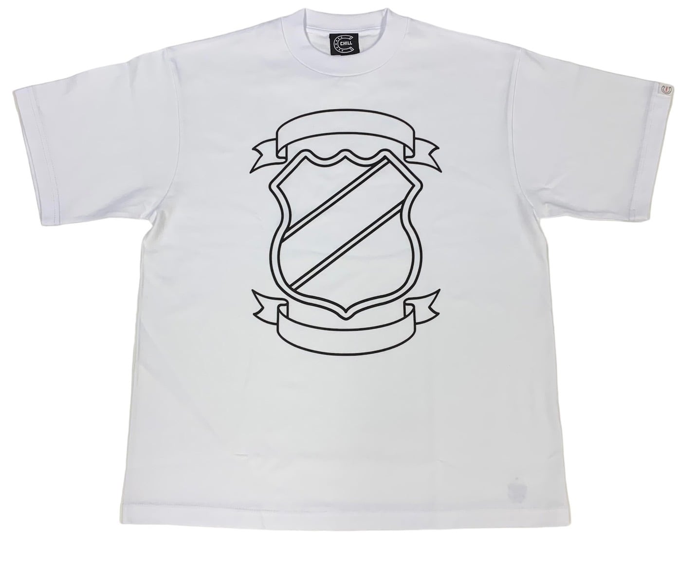 デザインは袖にCHILL折りタグ、前面に大きくアメリカのロードサインとして使われる形をモチーフにしたロードサインロゴを採用。