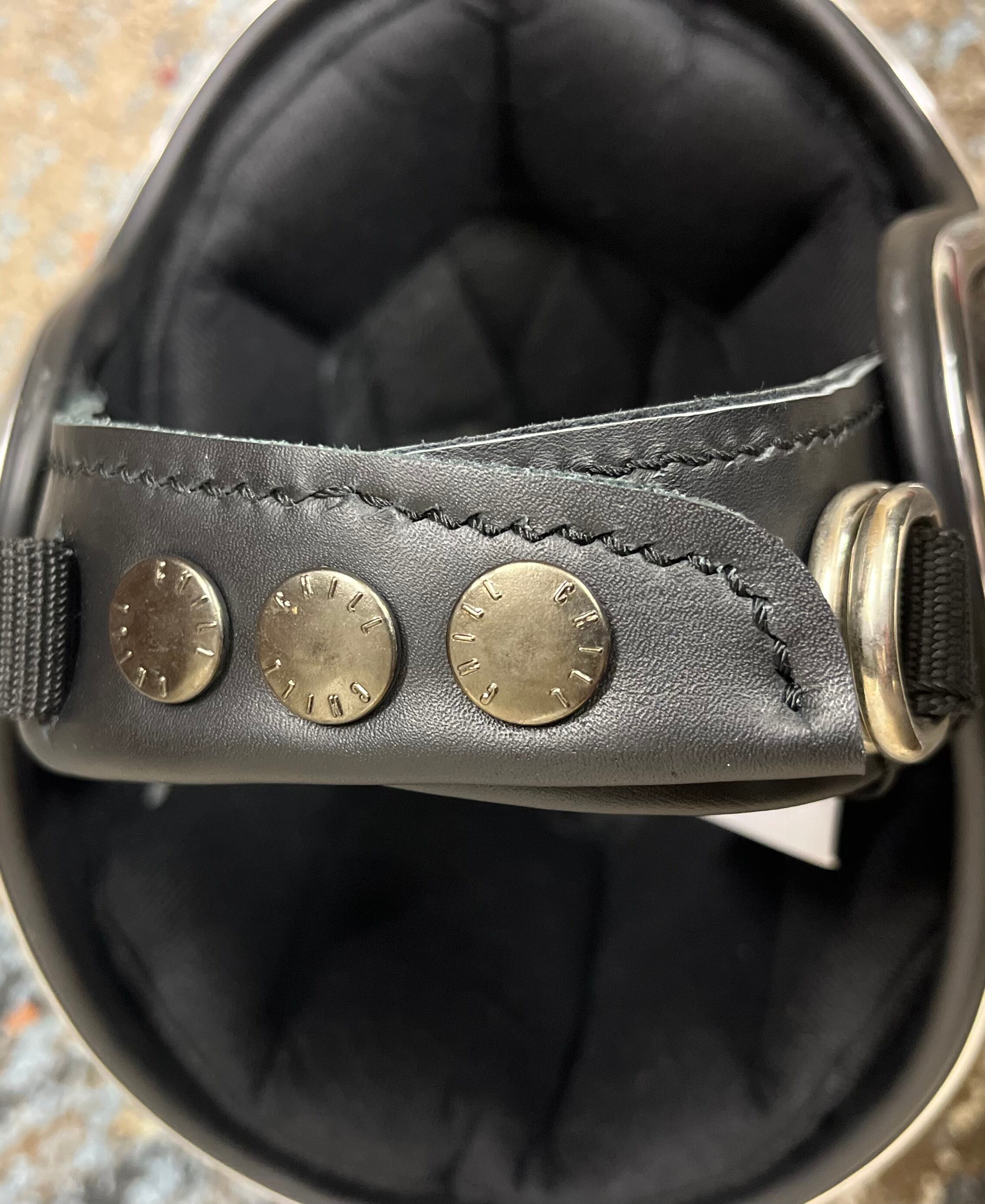 ダブルストラップですので頭をしっかりと固定でき、ストラップボタンにはCHILLオリジナルボタンを採用。