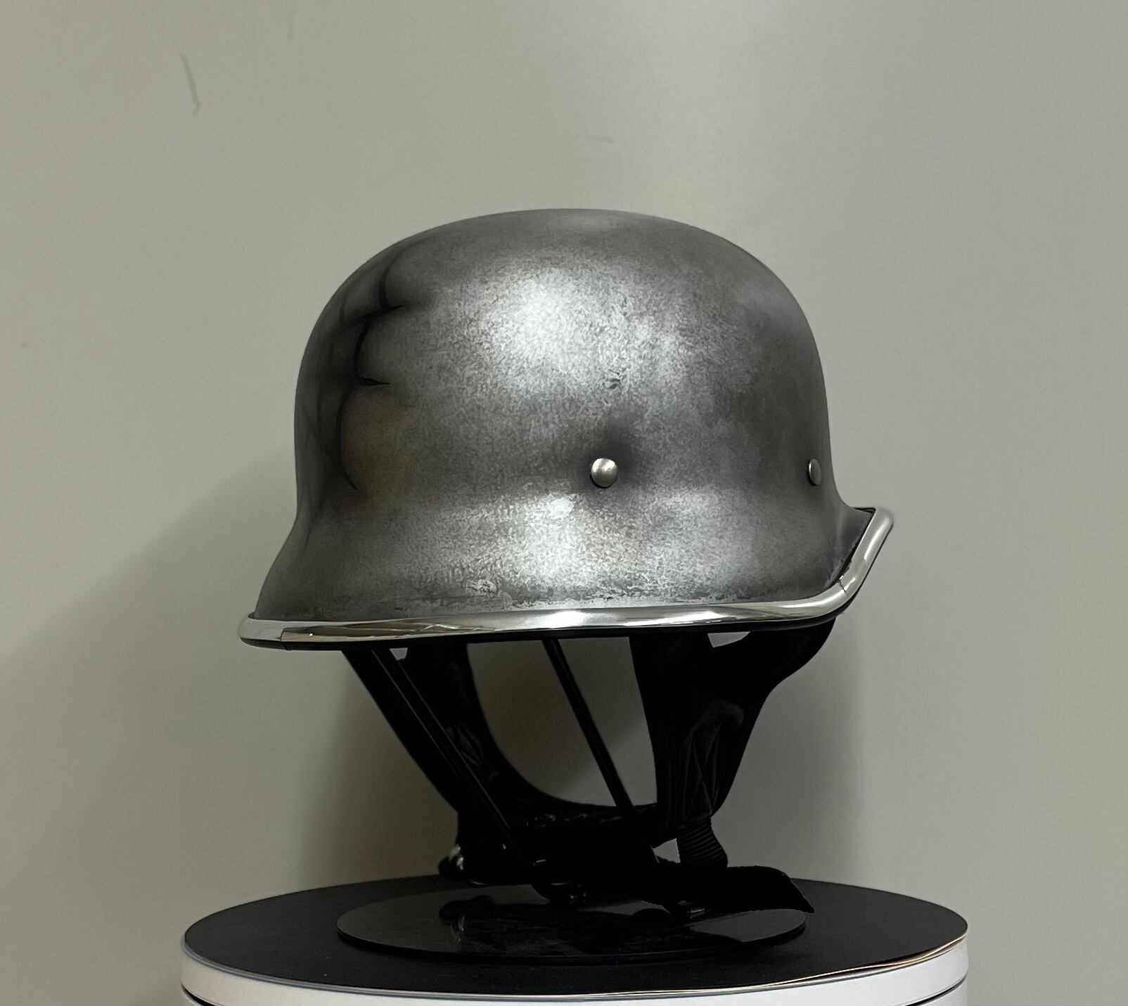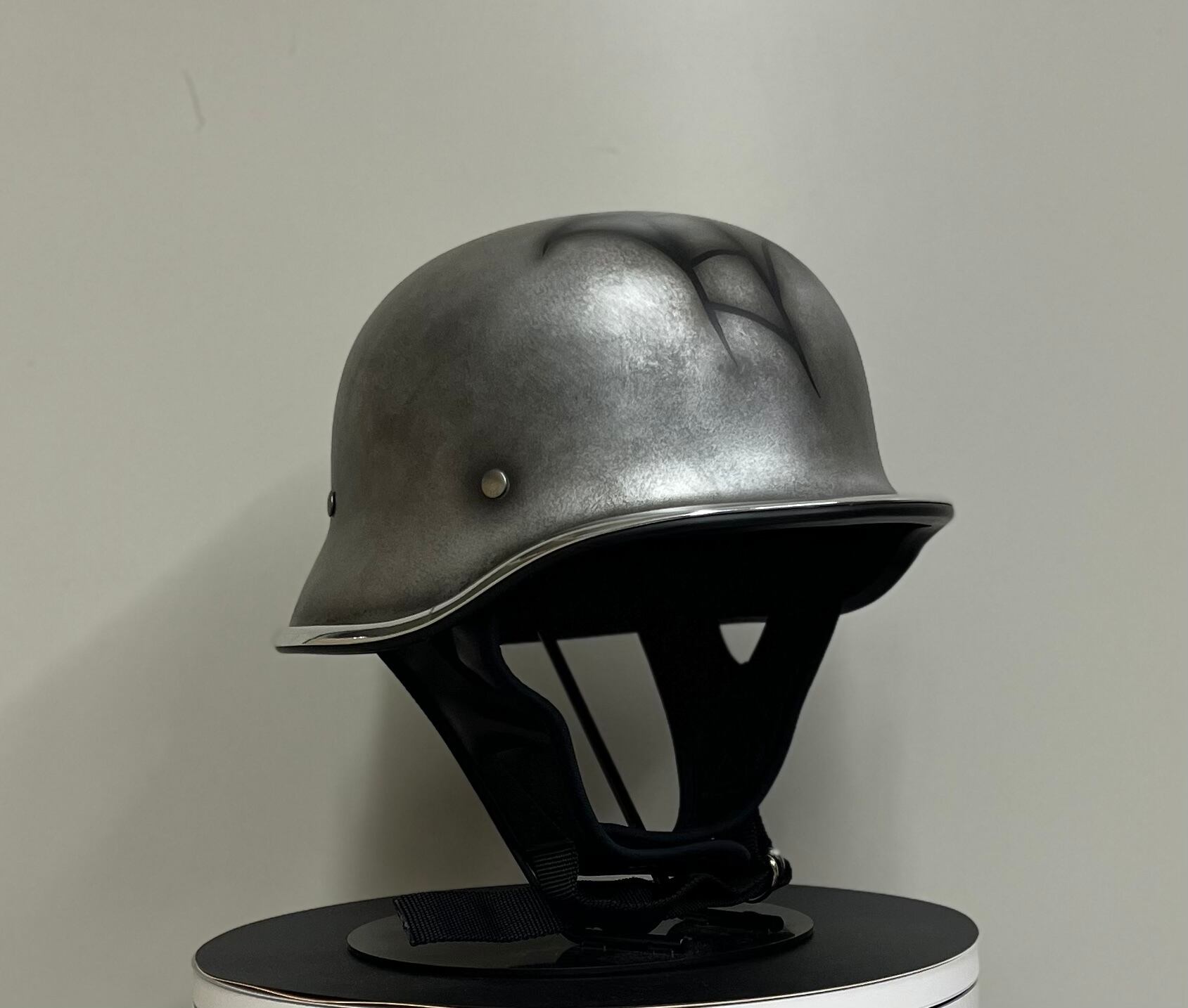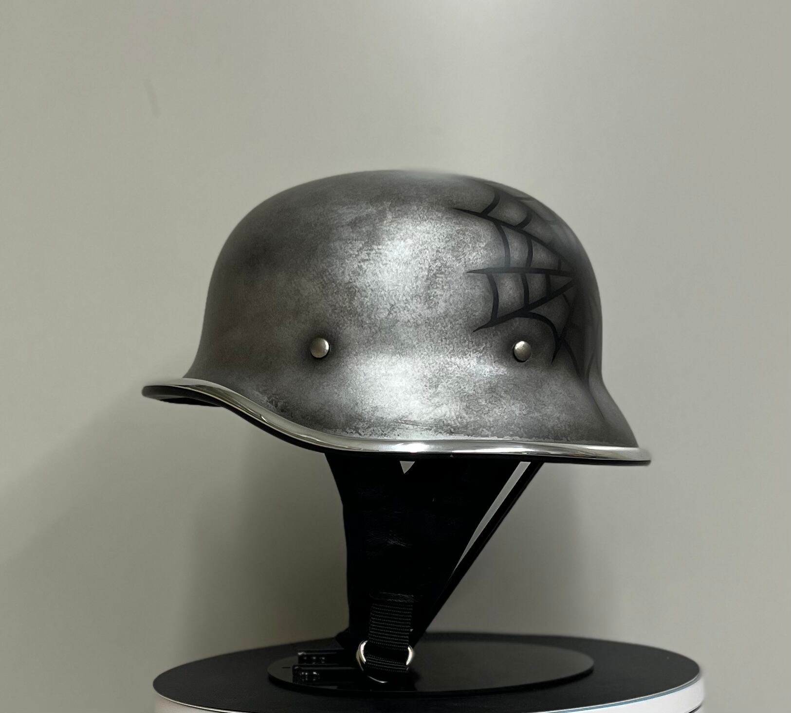 ヴィンテージのナチヘルを元に帽体をより小さくシェイプし、CHILLなりのアレンジを加えたフリッツヘルメットにメタルエイジングペイントを施し、さらに蜘蛛の巣を表現した個性的エイジングモデルです。