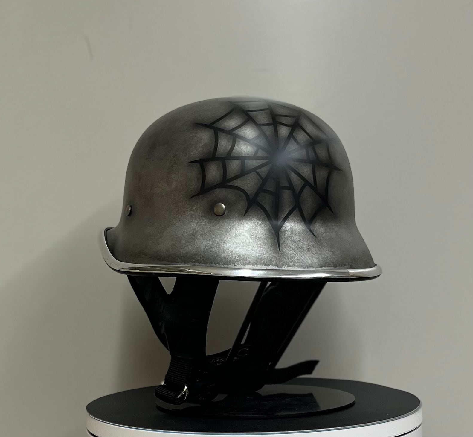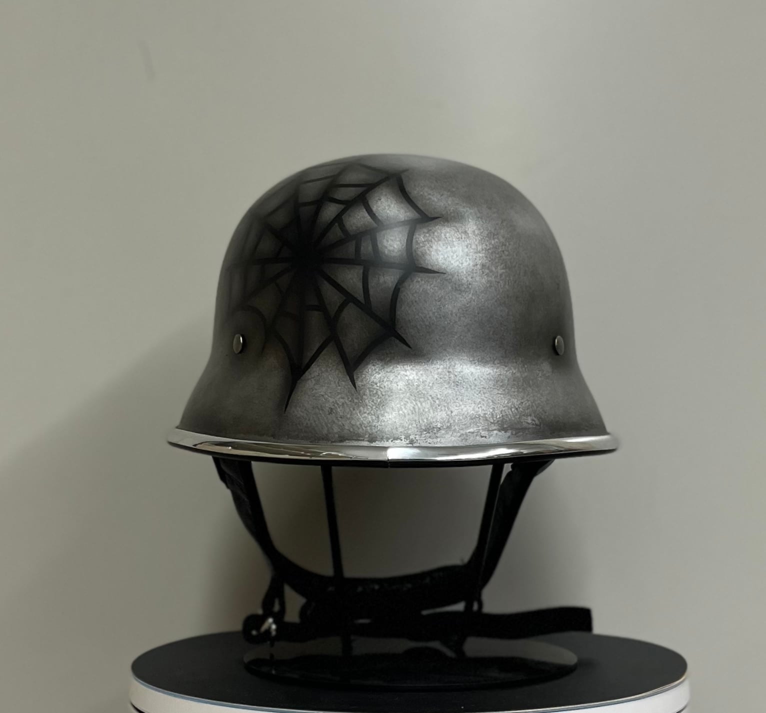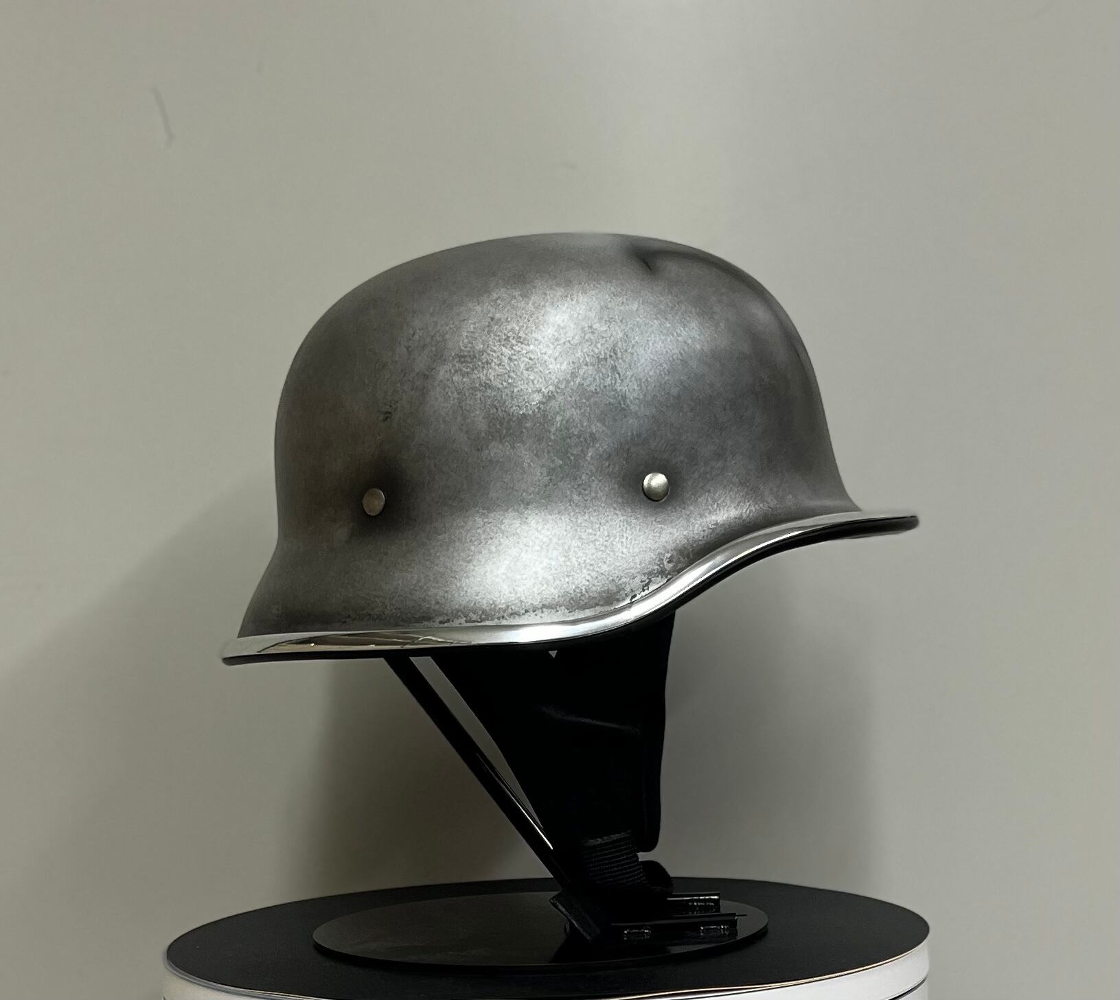 ヴィンテージのナチヘルを元に帽体をより小さくシェイプし、CHILLなりのアレンジを加えたフリッツヘルメットにメタルエイジングペイントを施し、さらに蜘蛛の巣を表現した個性的エイジングモデルです。