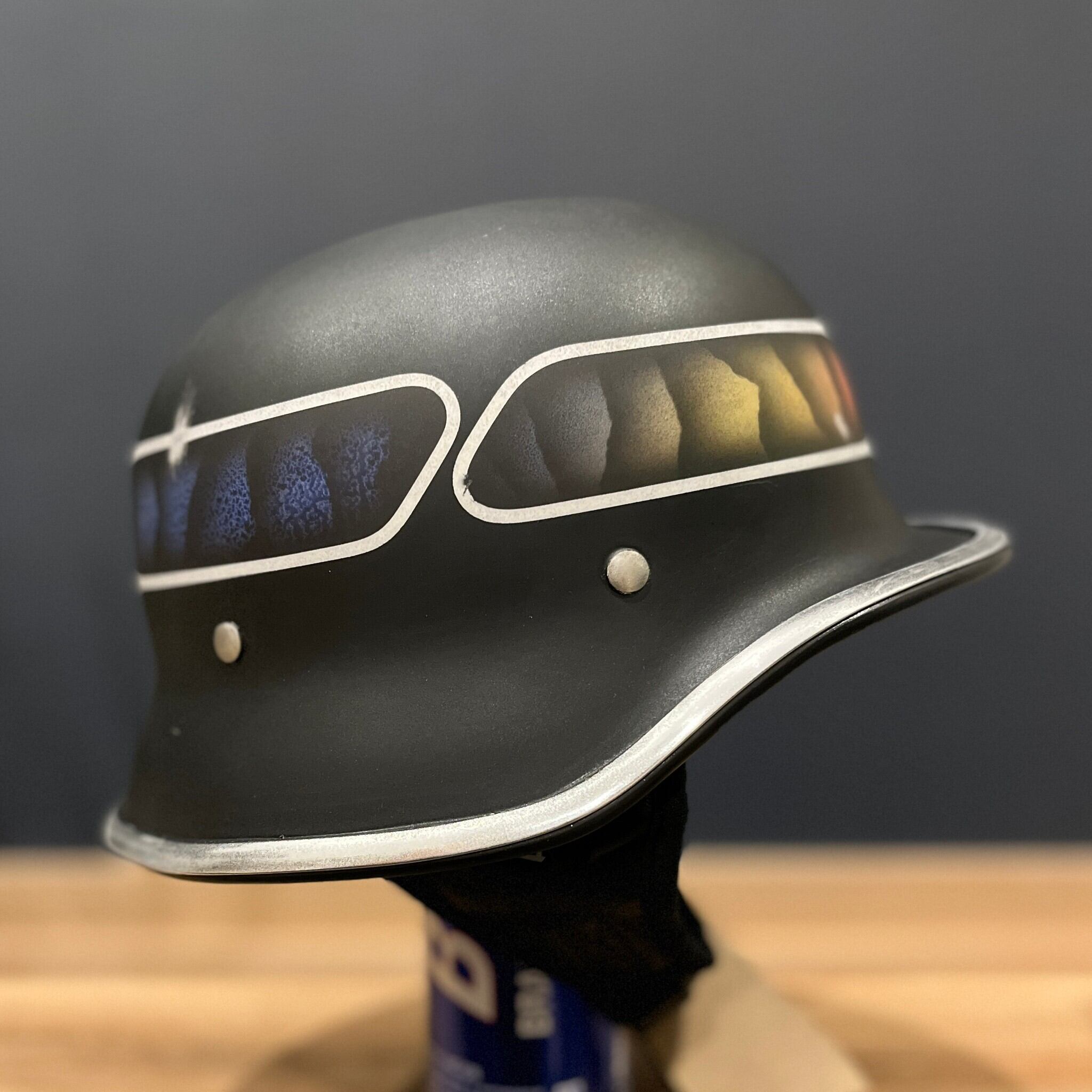 ヴィンテージのナチヘルを元に帽体をより小さくシェイプし、CHILLなりのアレンジを加えたフリッツヘルメットにカスタムペイントを施したスペシャルモデルです。