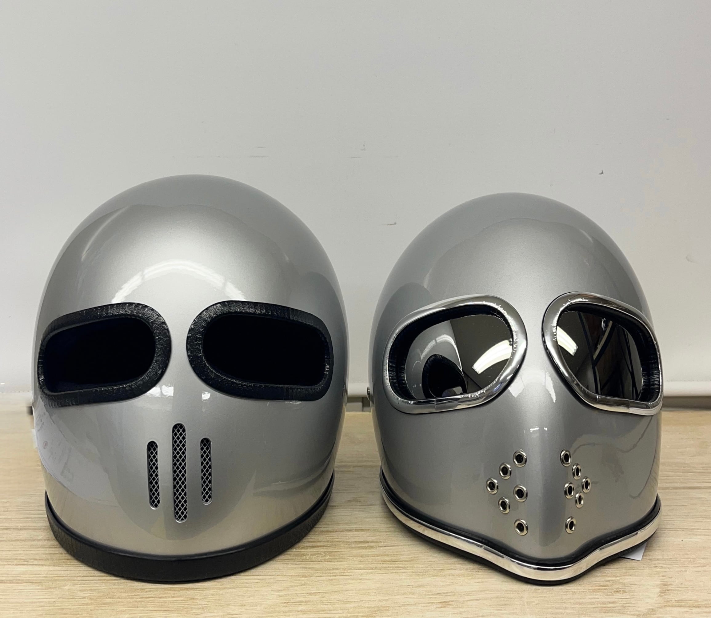 CHILLオリジナルヘルメットは自社代表によるデザインのもと、自社海外スタッフによって、型から全ての工程においての一切を手作業によるオールハンドメイドで作製されているため、個体差はありますが塗装ムラや塗装後の作業による小傷、わずかにステッチ、通気口、トリム、シールドなどにズレなどがある場合がございます。